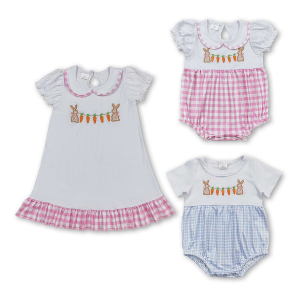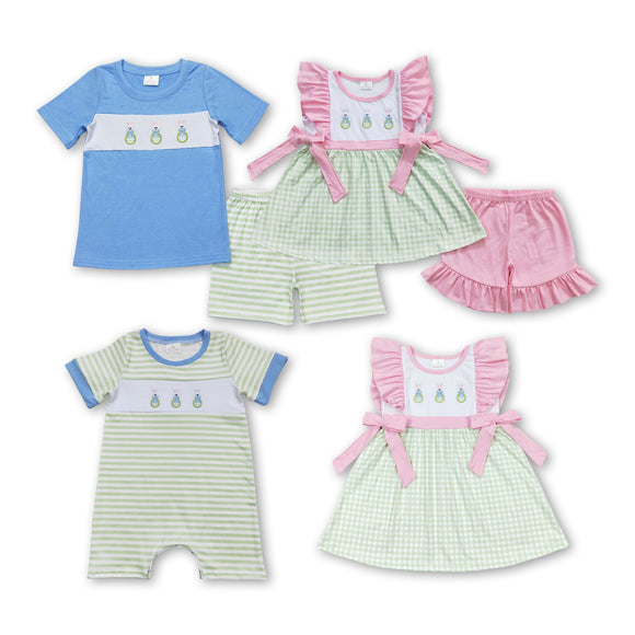 Matching Baby girls boys fish checkered romper outfits embroidery