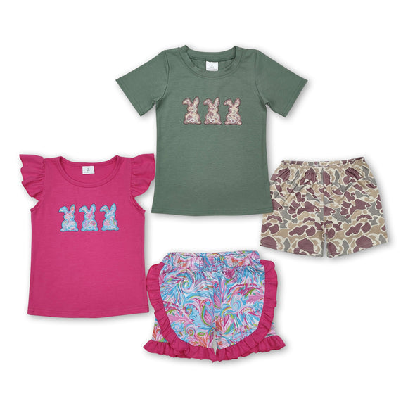 Matching Girls boys Easter bunny blanket pajamas embroidery