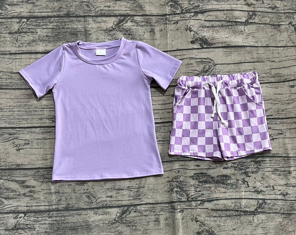 Pre-order GSSO2961 baby girls kpop purple short sleeve shorts button pajamas
