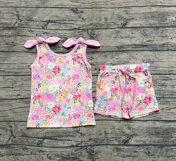 12.5 Pre-order GSSO3002 embroidered baby girls camo pink flying sleeve shorts outfits