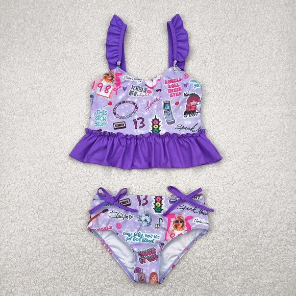 Purple sleeveless guitar smile one piece singer girls swimsuit