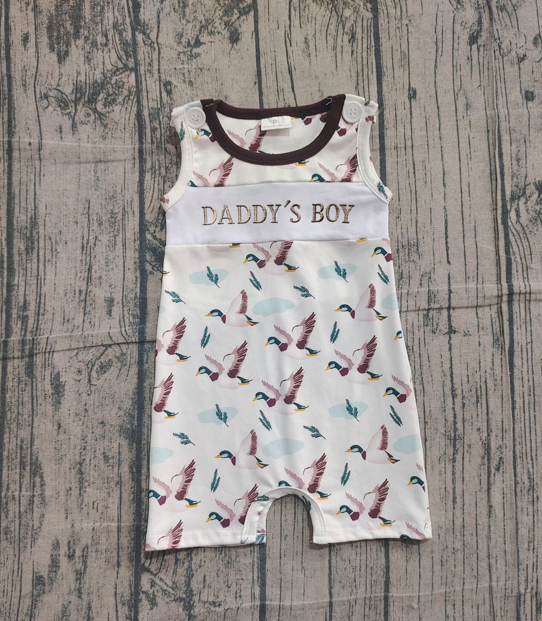 10.18 Pre-order SR3347 baby boys smocked Dad's boy duck sleeveless romper