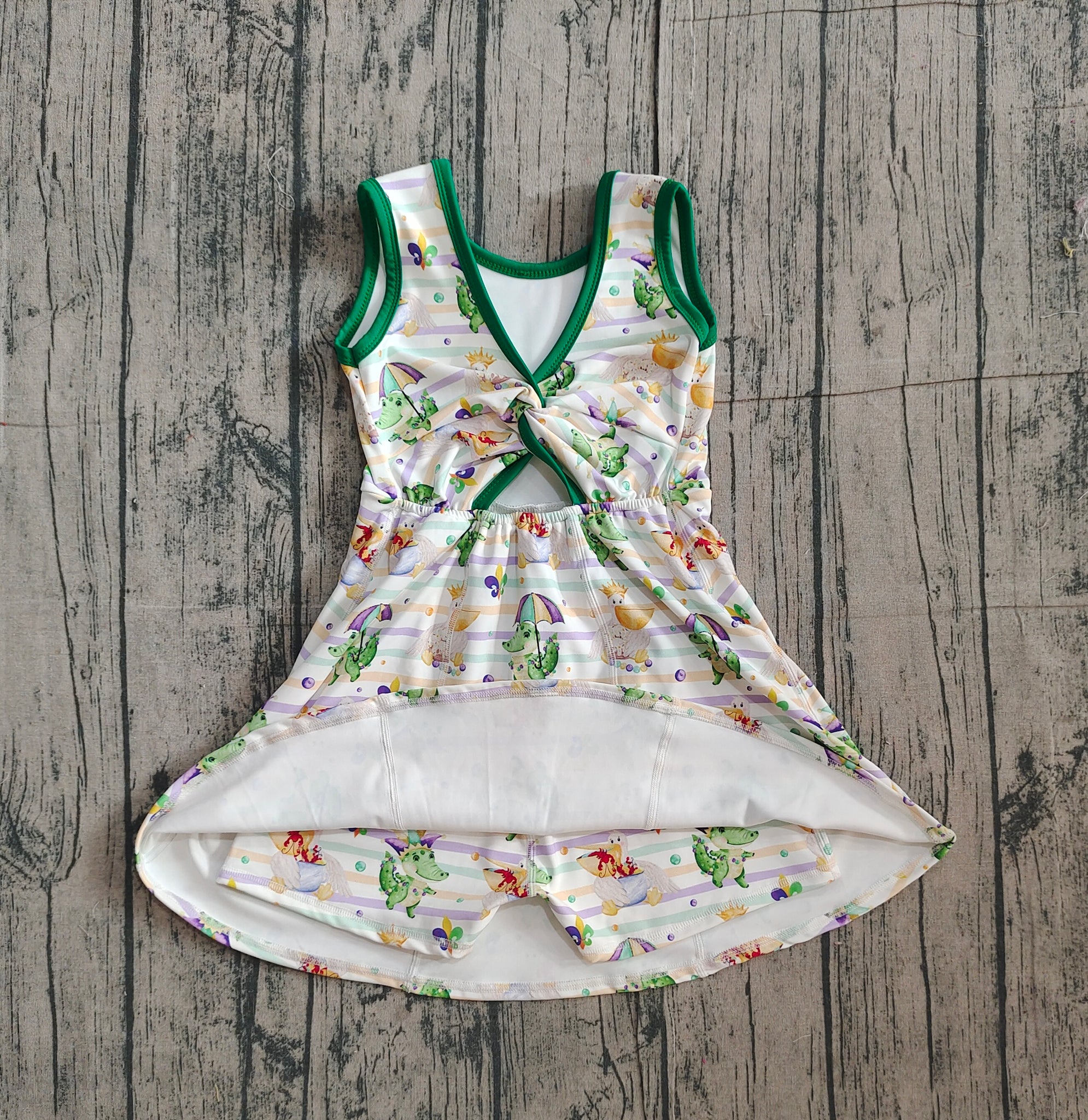 10.22 Pre-order GSD2950 girls Mardi Gras Crocodile sleeveless Dress yoga