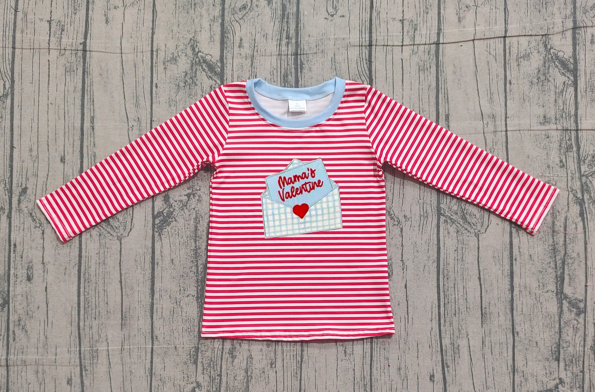 11.15 Pre-order BT1574 baby boys Embroidered Valentine's letter red stripe top