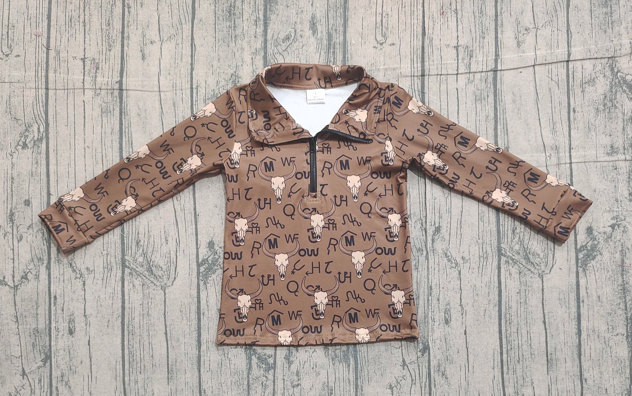 11.18 Pre-order BT1597 baby boys cow brown long sleeve zipper pullover