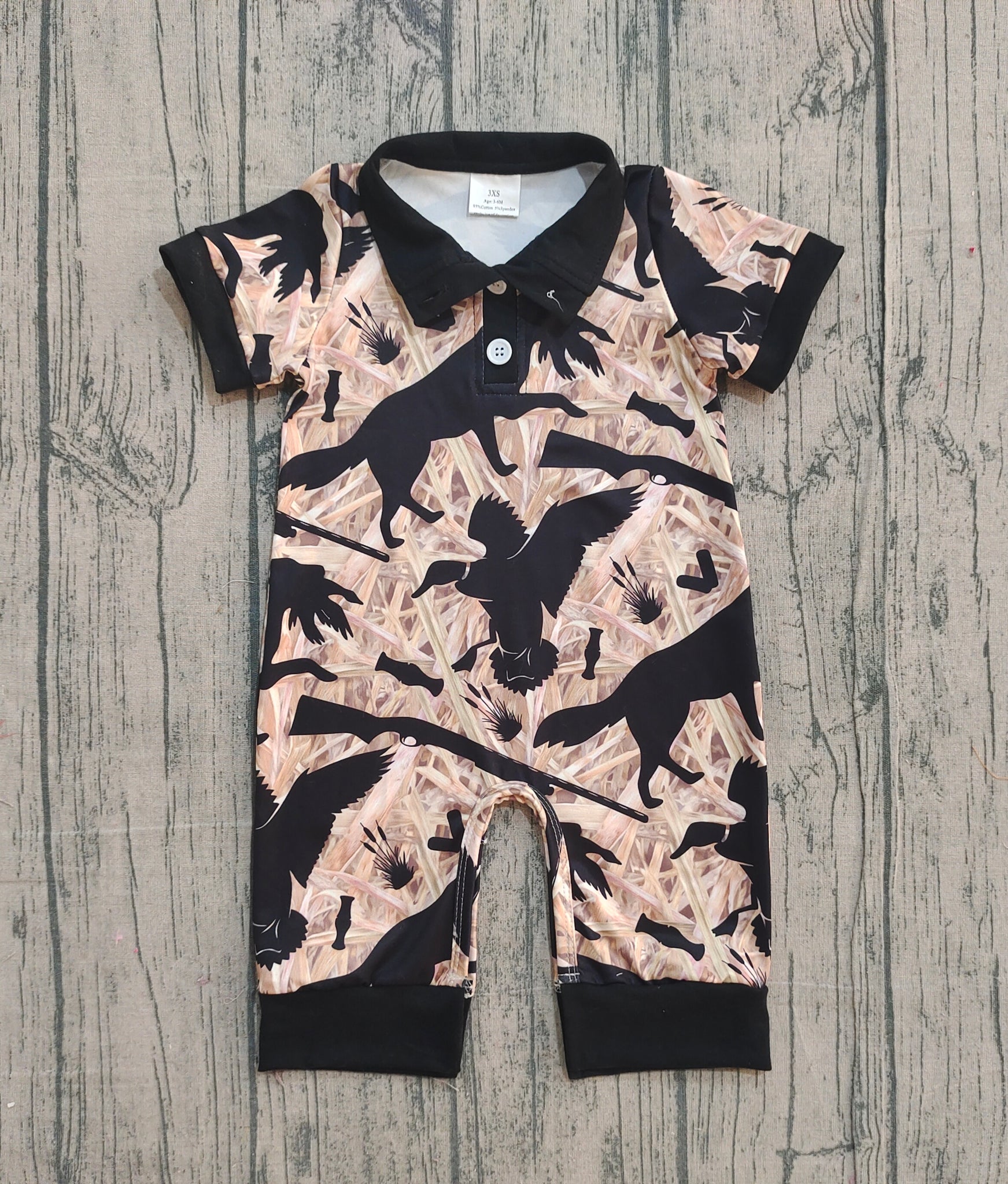 11.22 Pre-order SR3637 baby boys horse leaves button short sleeve romper