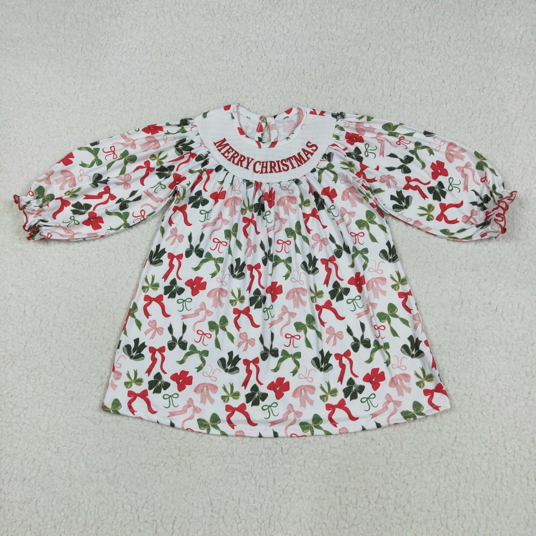 GLD1094 baby girls MERRY Christmas red green bow dress smocked