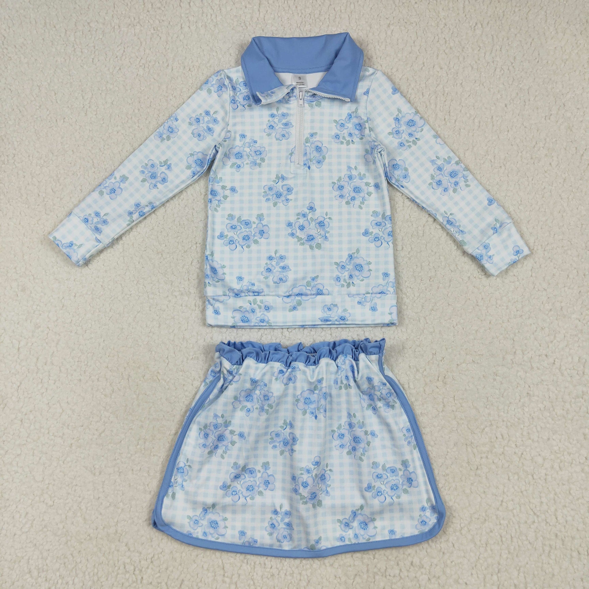 GLD1570 baby girls flower blue long sleeve green skirt Outfits yoga