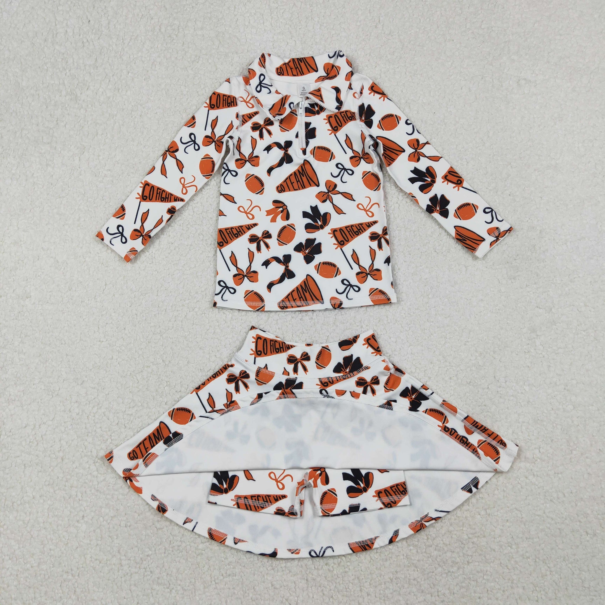 GLD1285 baby girls CHEER orange long sleeves skirt outfits yoga