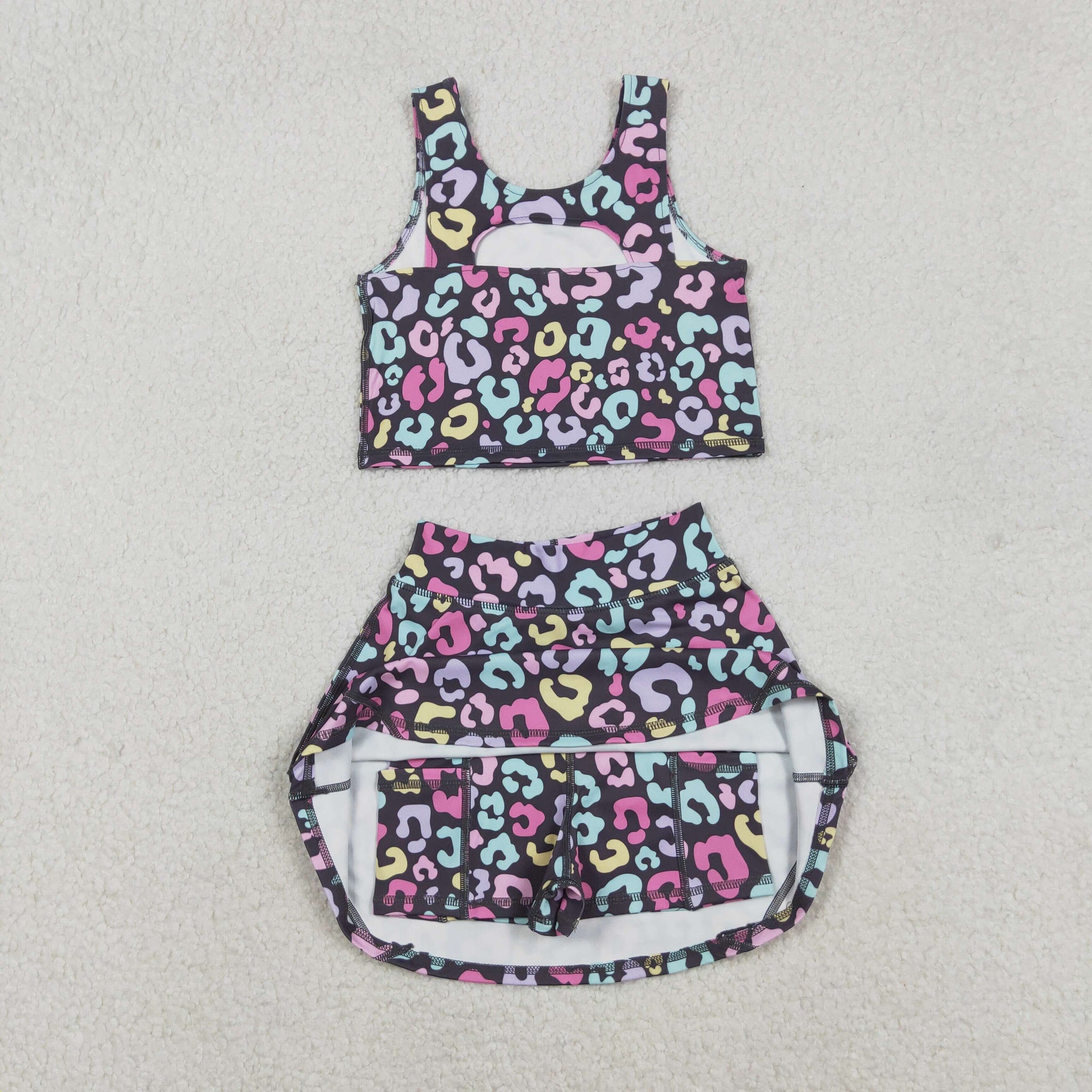 GSD2176 girls colorful leopard skirt outfits yoga