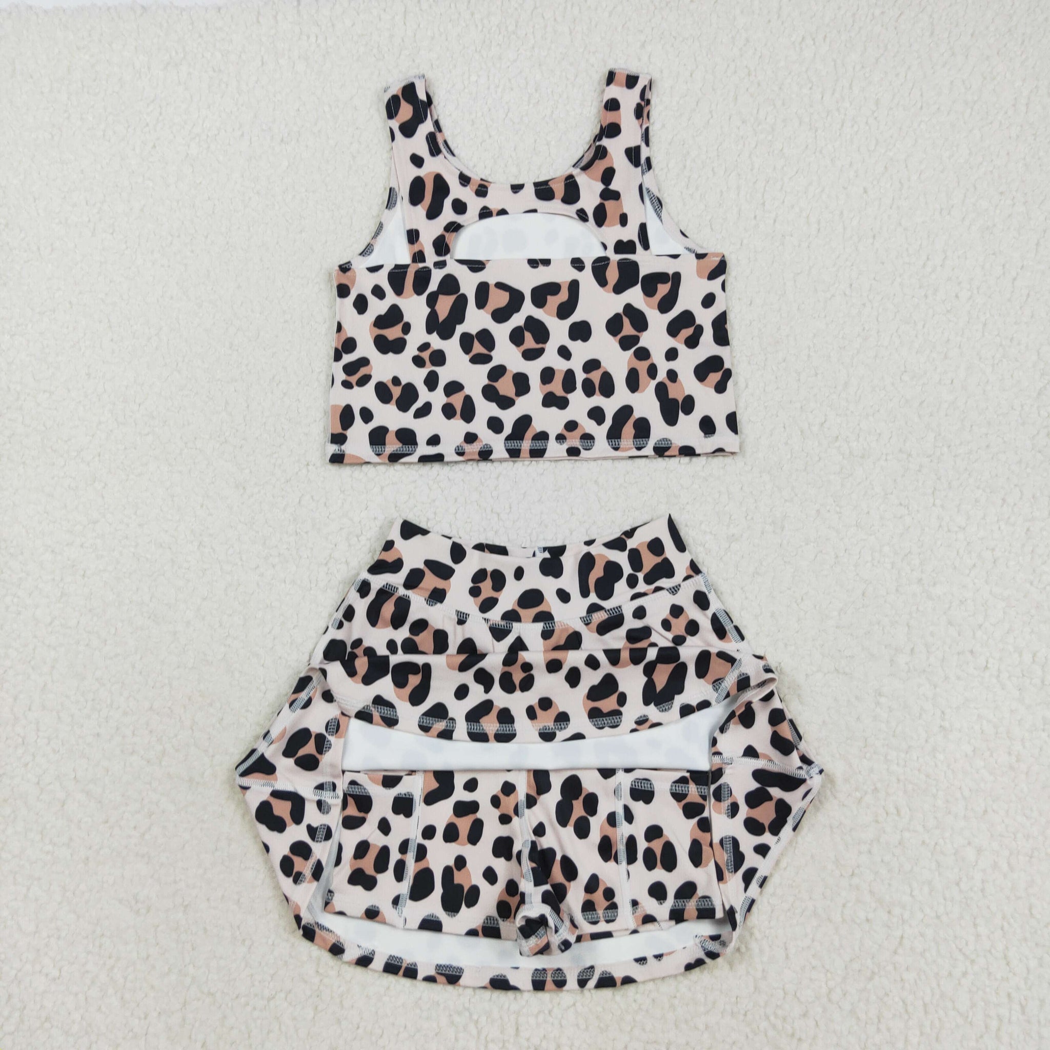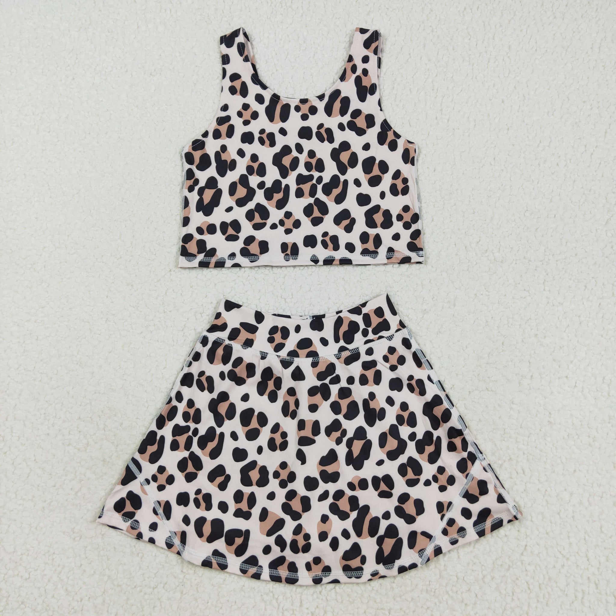 GSD2327 girls leopard sleeveless skirt outfits yoga