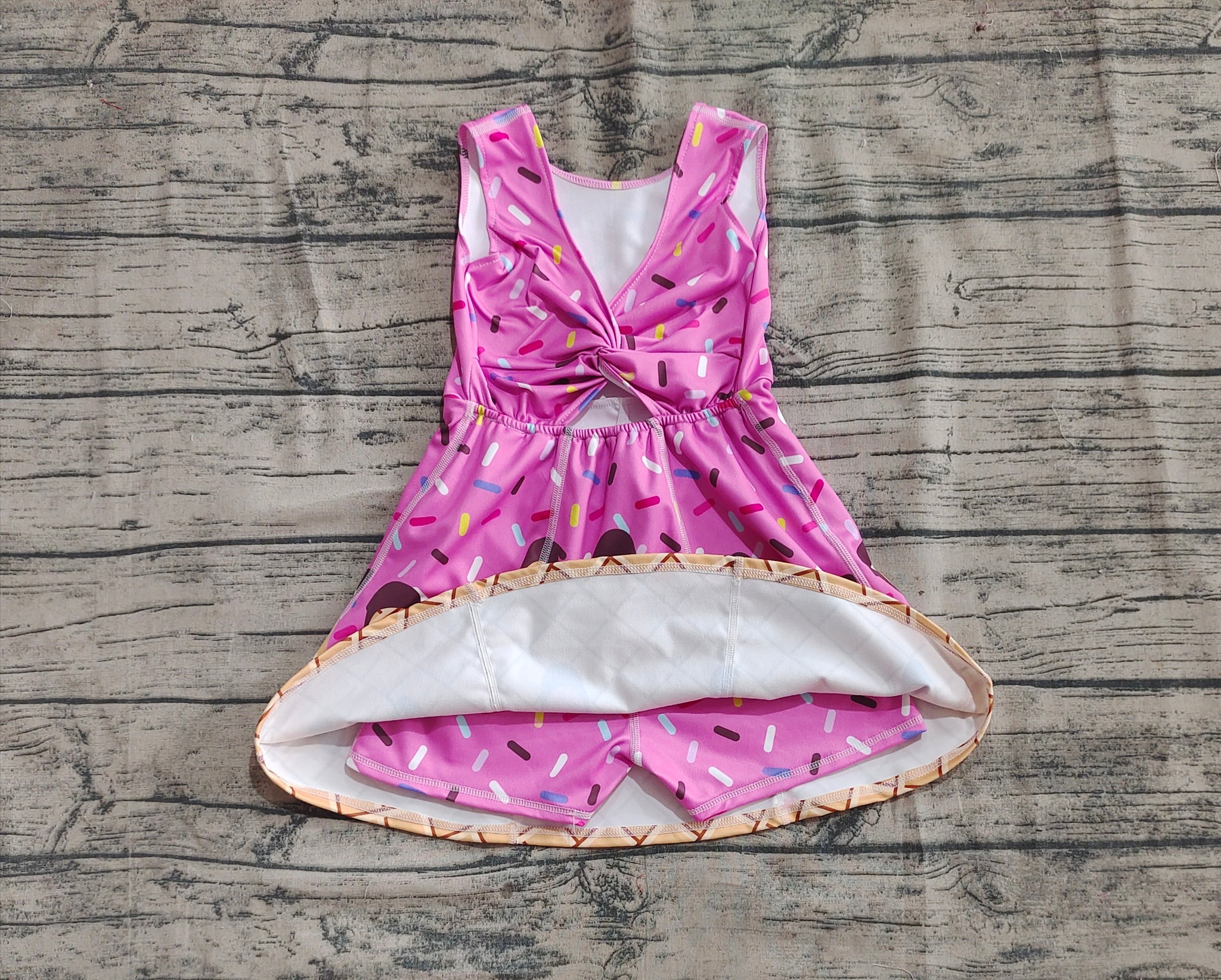 GSD2413 girls sleeveless ice cream yellow checkered Dress yoga