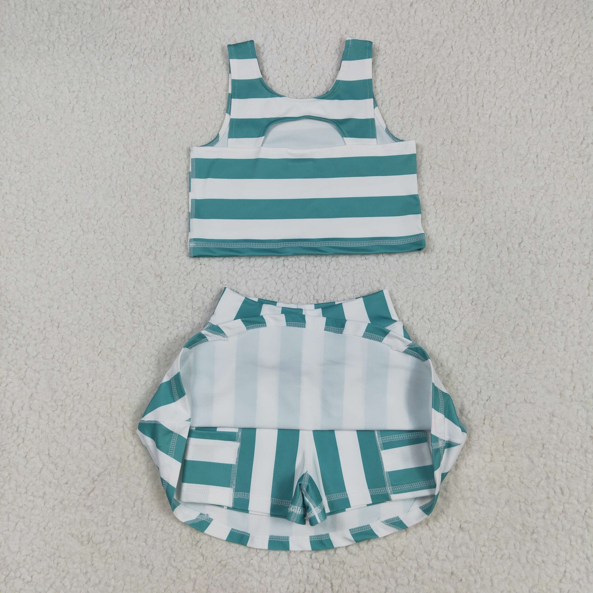 GSD2432 girls red sleeveless green stripe skirt outfits yoga