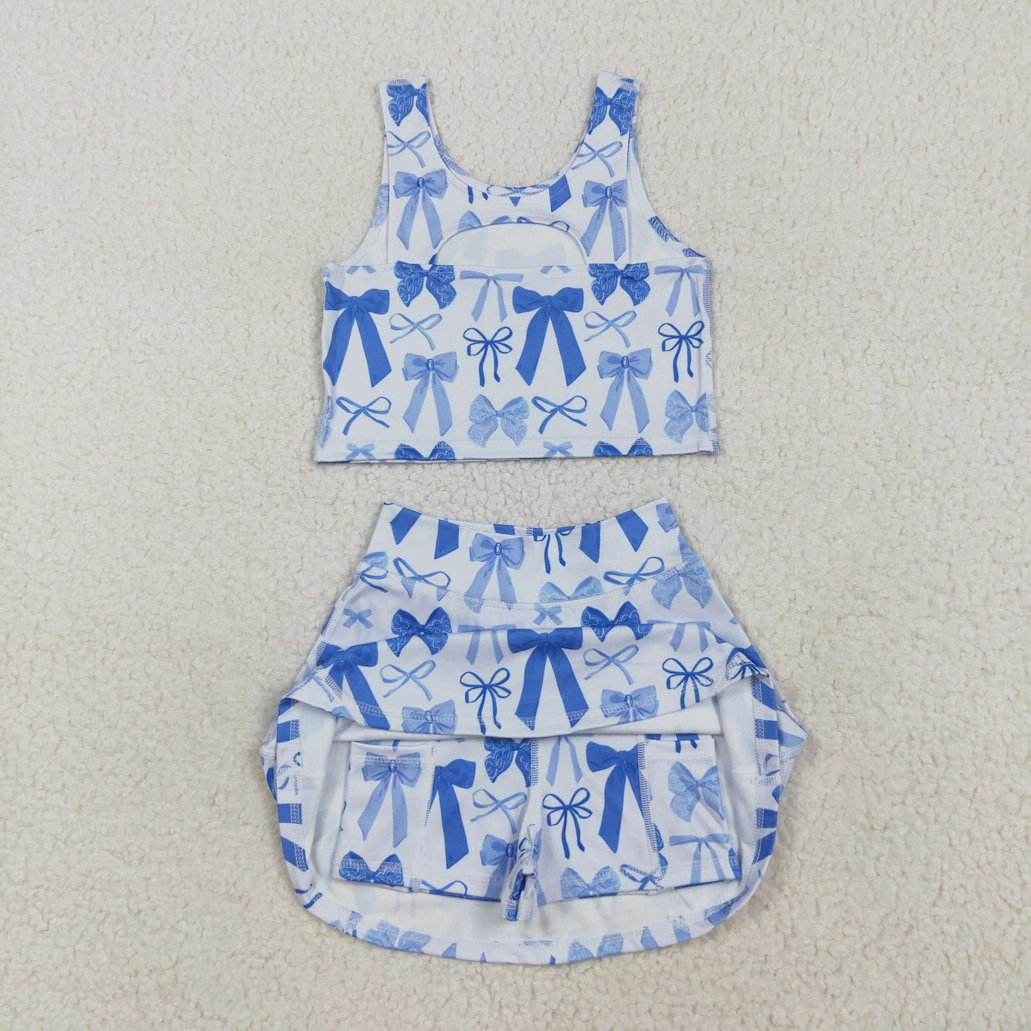 GSD2640 girls vest blue bow skirt outfits yoga