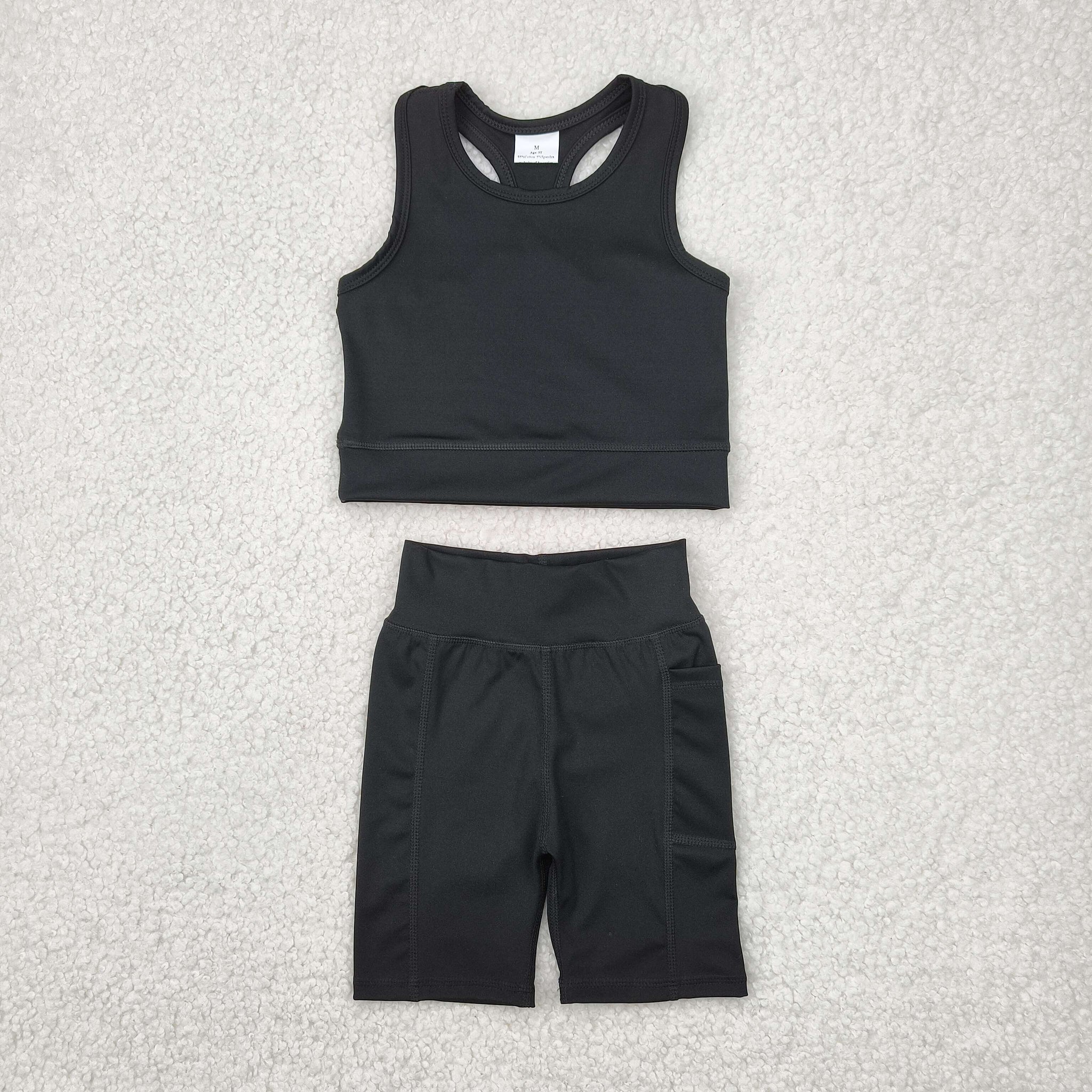 GSSO1517 baby girl clothes black toddler girl yoga summer outfit