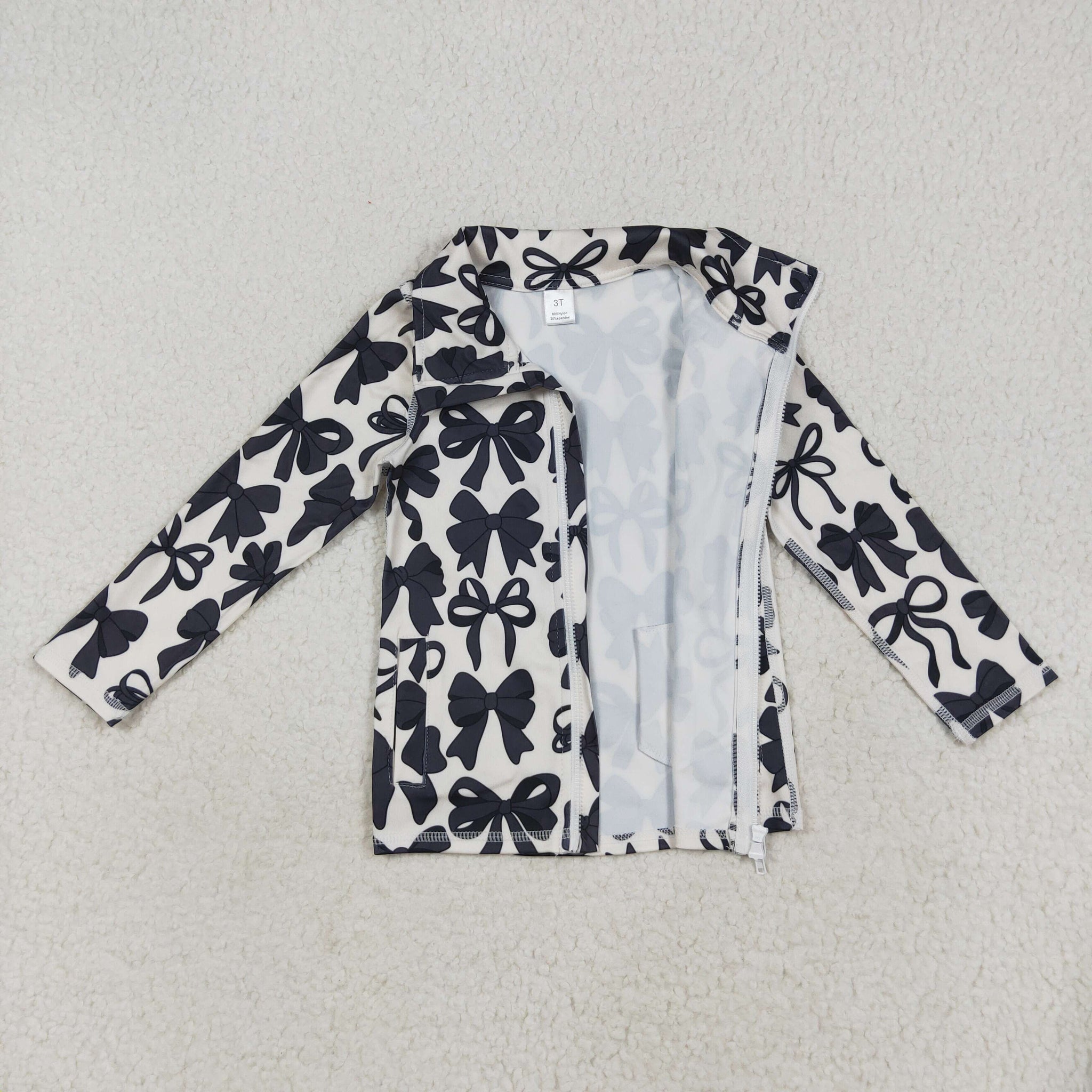 GT1084 baby girls black bow zipper long sleeve top yoga