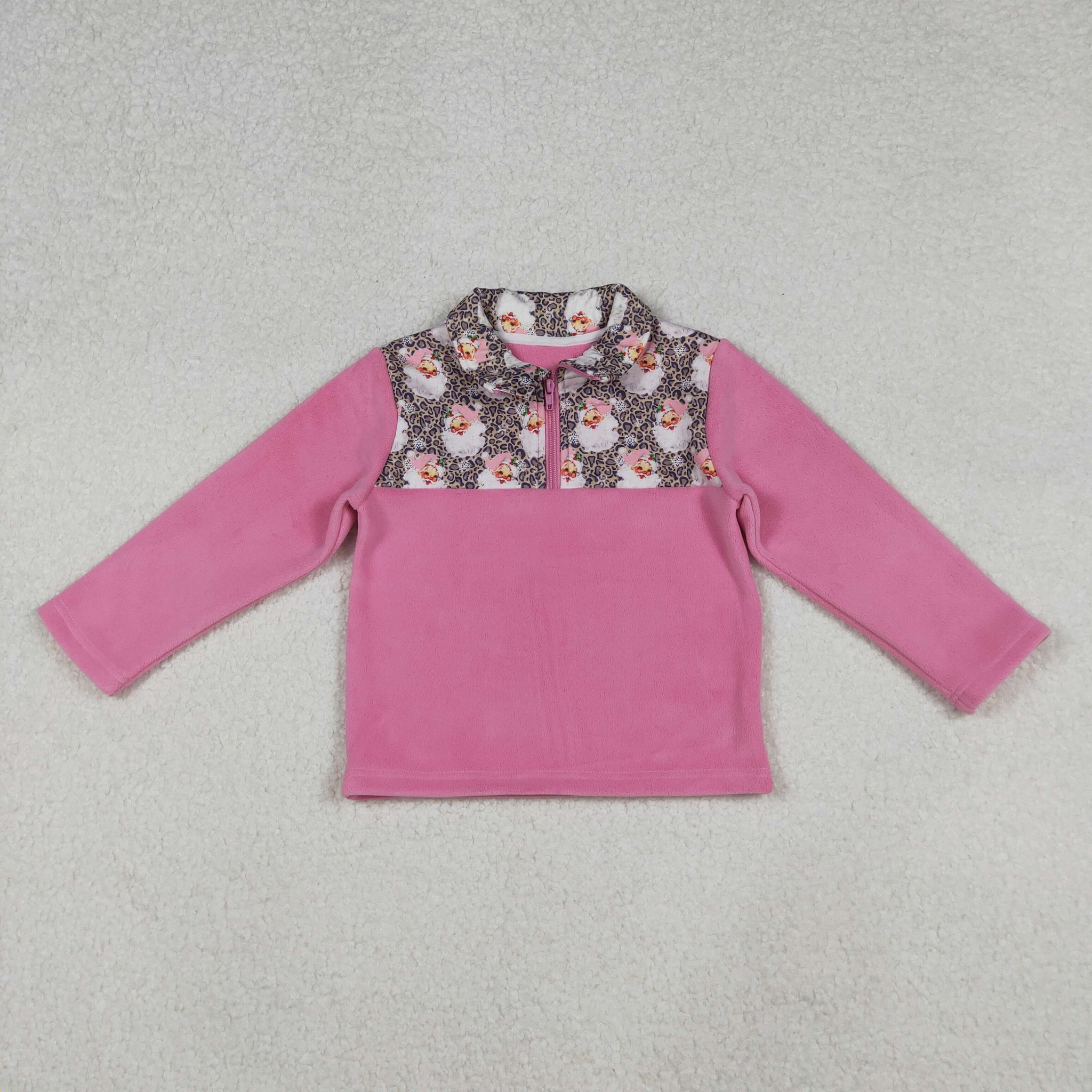 GT1151 baby girls Christmas leopard pink hoodies zipper Pullover