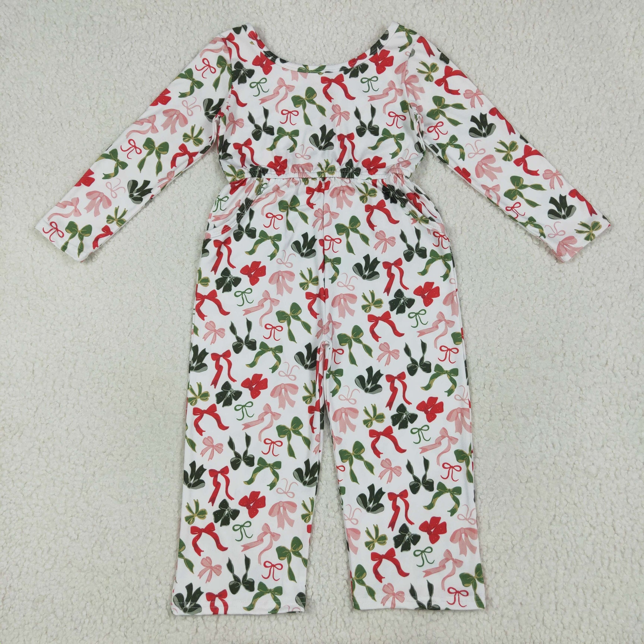LR2192 baby girls long sleeve Christmas green red bow Jumpsuit