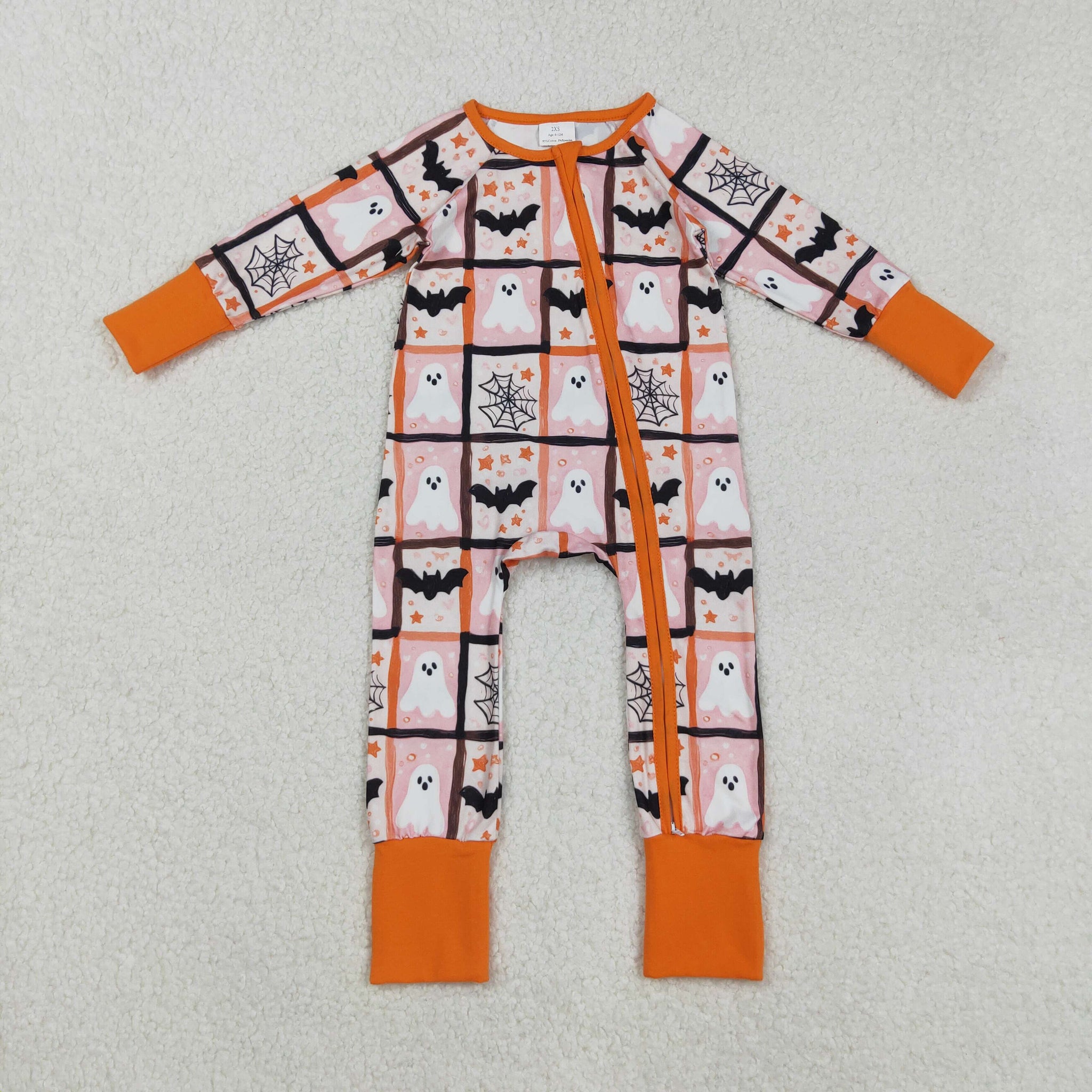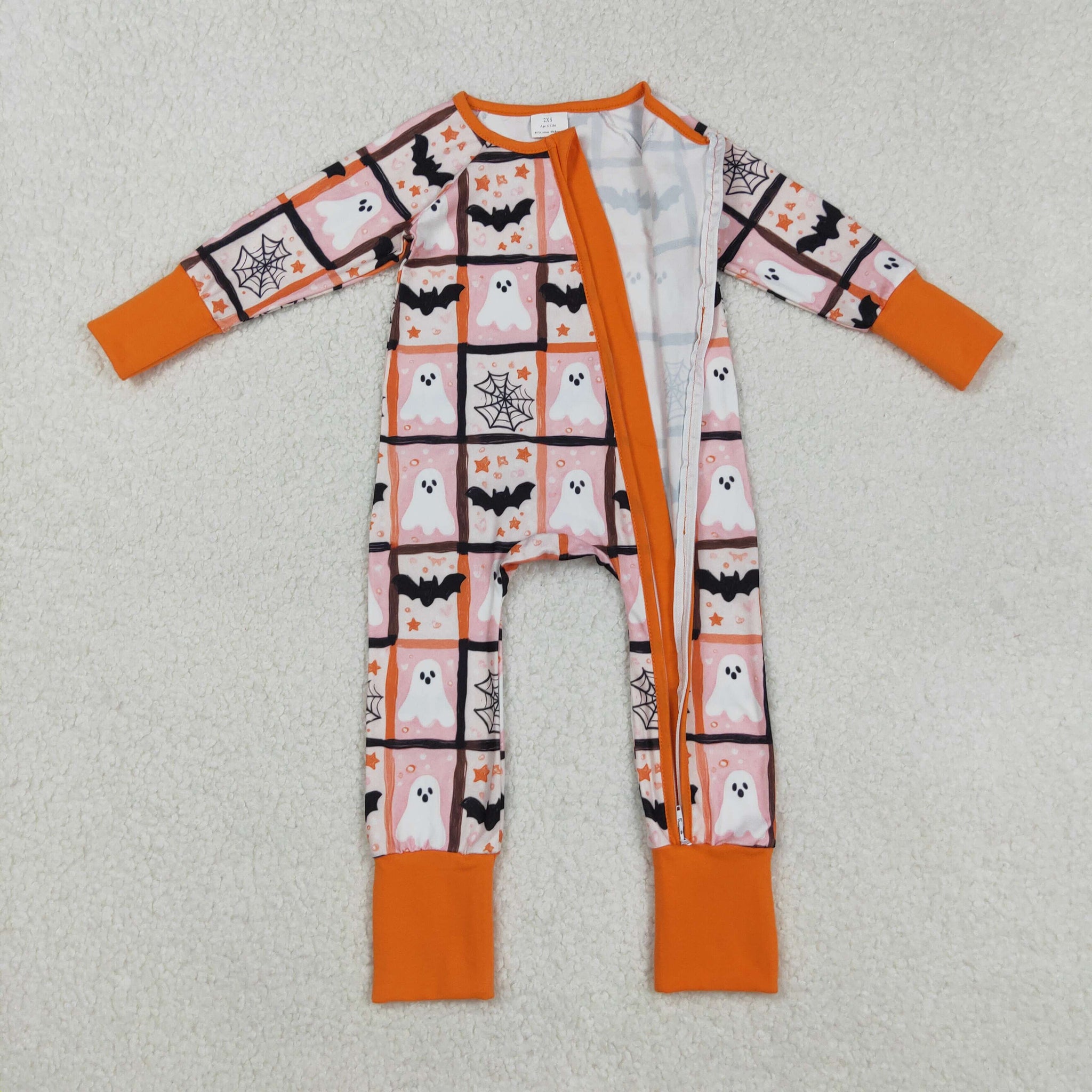 LR2539 baby boys Halloween bat ghost orange zipper romper