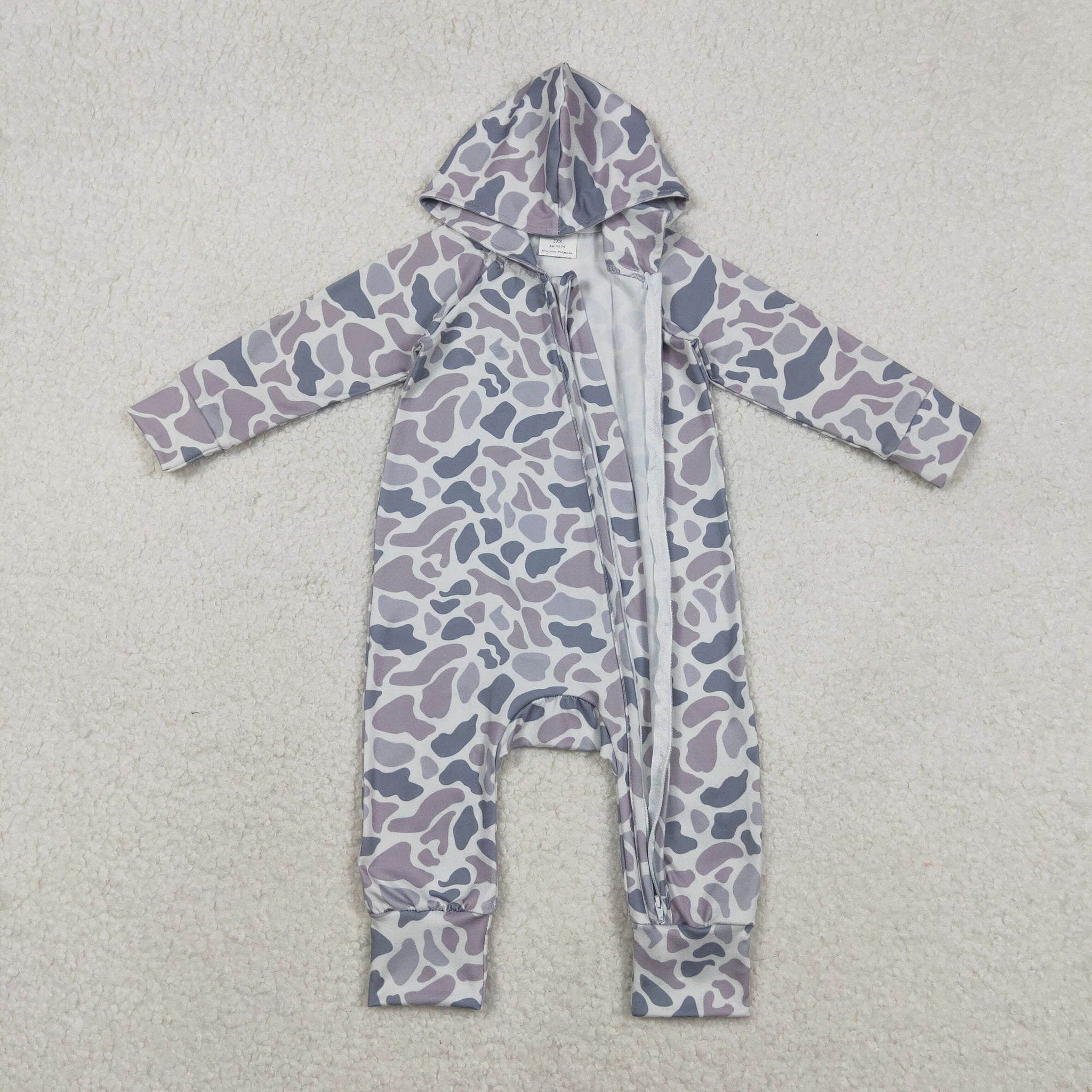 LR2813 baby boys camo long sleeves hooded zipper romper