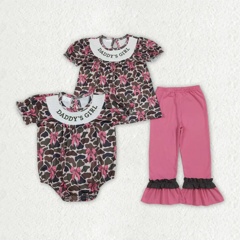Matching Baby girls DADDY‘s girl bow camo dress romper smocked