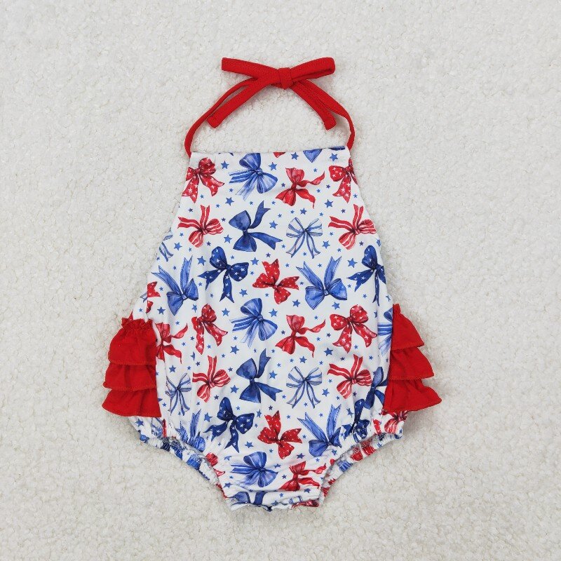 Matching Baby girls July Fourth red bow outfits romper