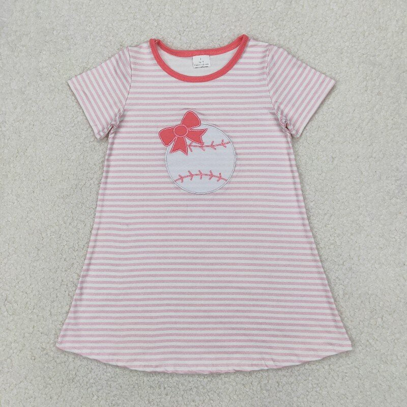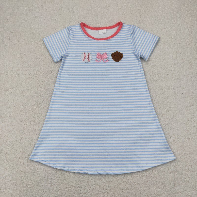 Matching Baby girls summer embroidery baseball stripe outfits
