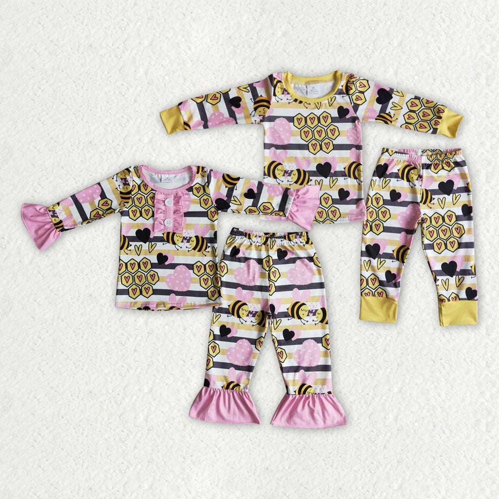 5.5 Matching Girls boys girls Valentine bee stripe pajamas