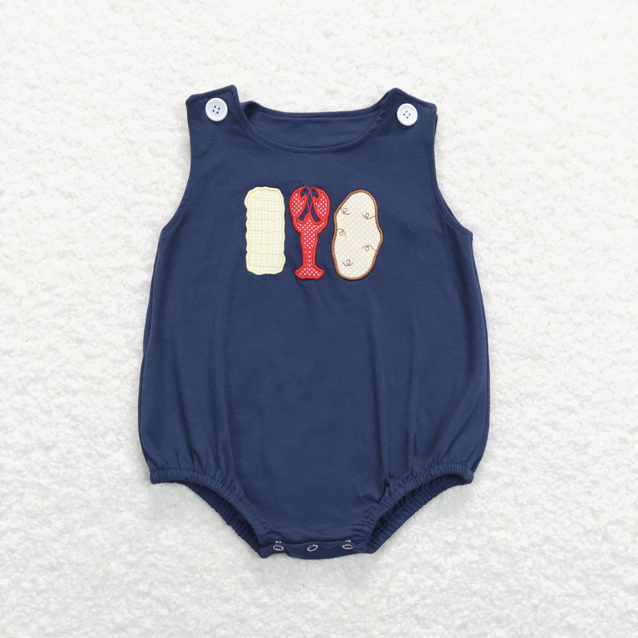 SR0740-- caryfish navy embroidery boys bubble romper--USA