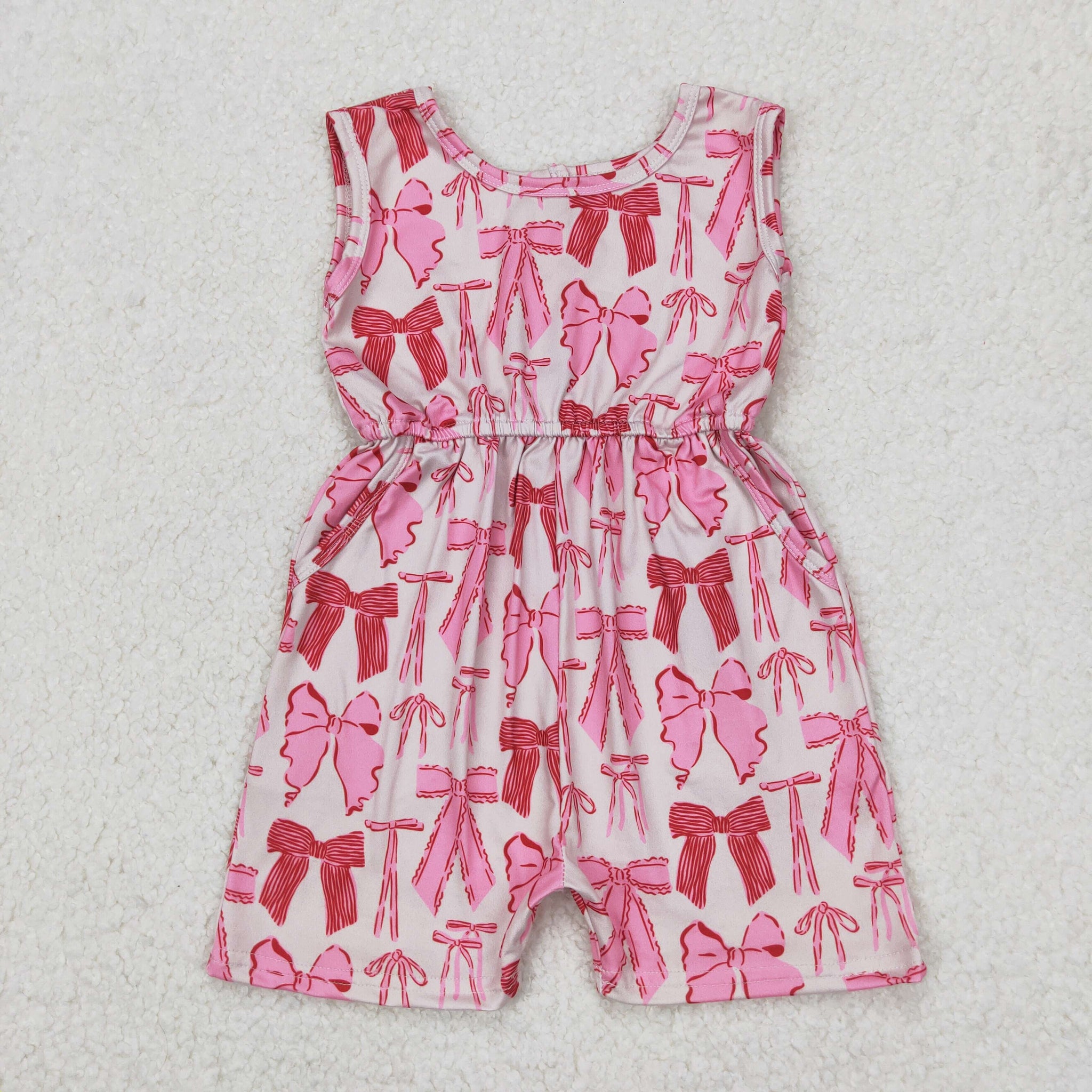 SR2670 baby girls sleeveless pink bow Jumpsuit