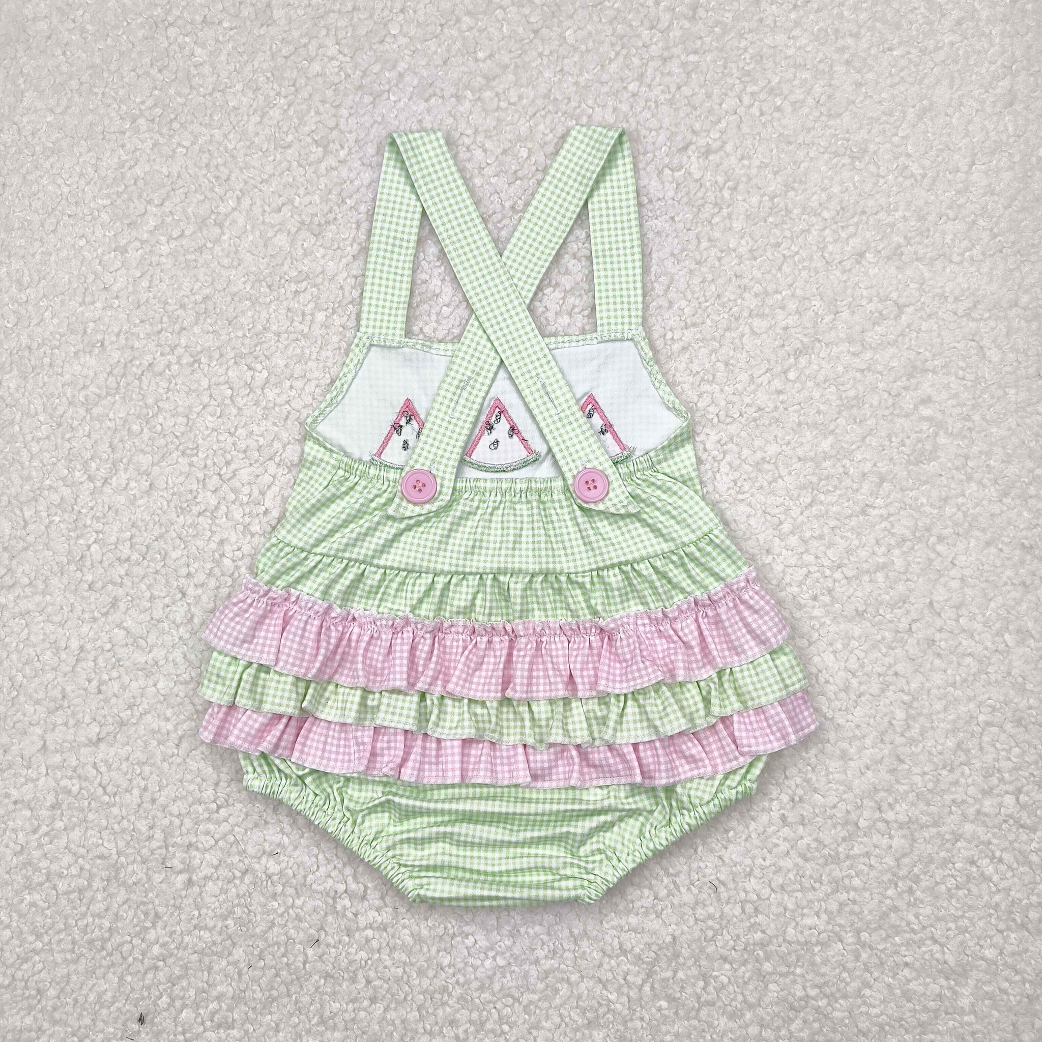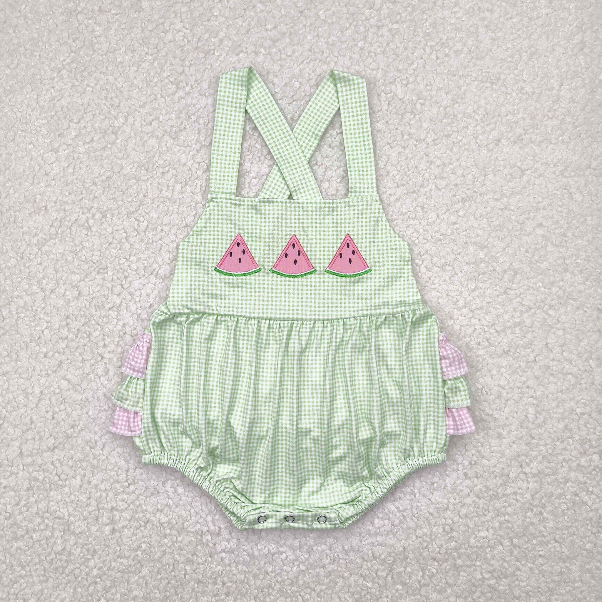 SR2764 Baby girls pink flying sleeve Embroidered watermelon green romper