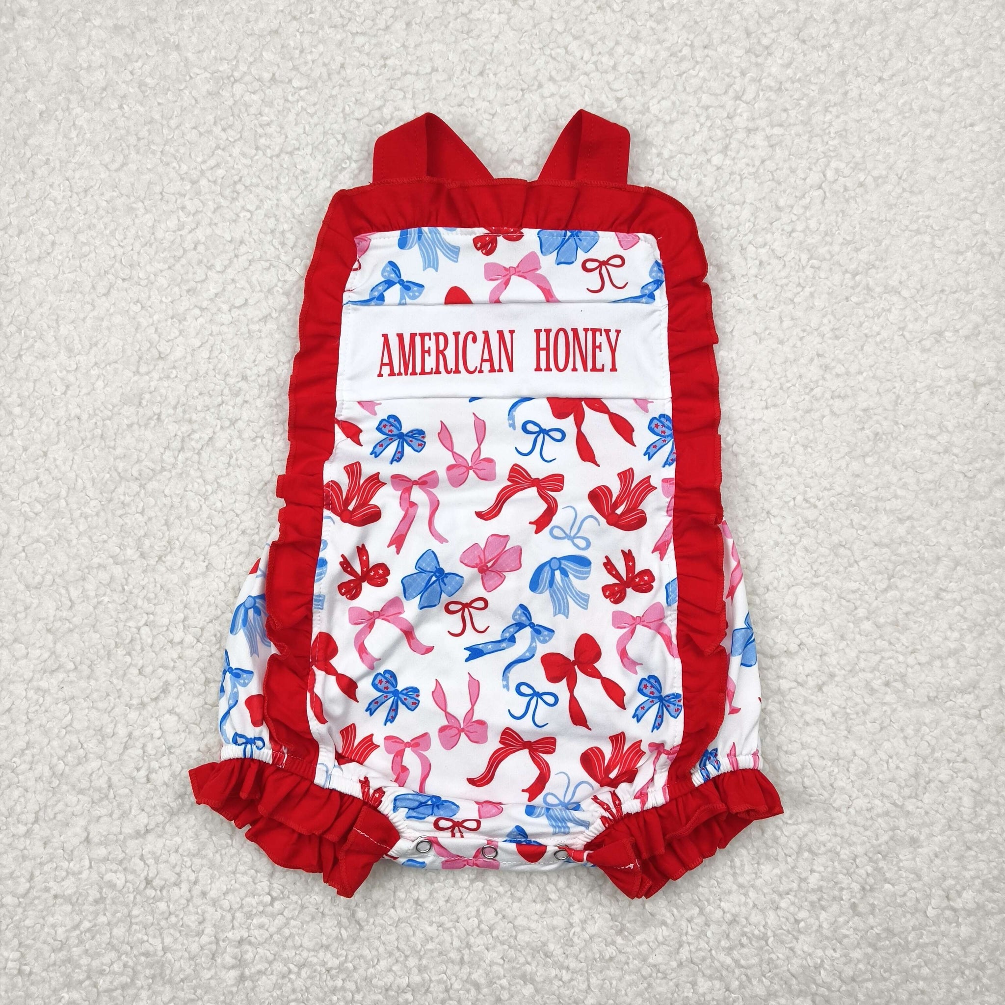 SR3048 Baby girls red bow romper
